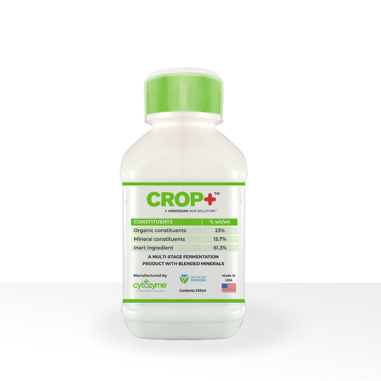 Crop+ includes complex/chelated micronutrients, marine algae extracts, and carefully selected metabolites, all synthesized using naturally existing microorganisms.